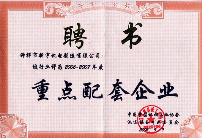 重點配套企業證書