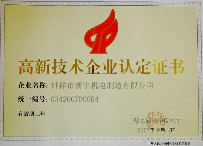 高新技術企業認定證書