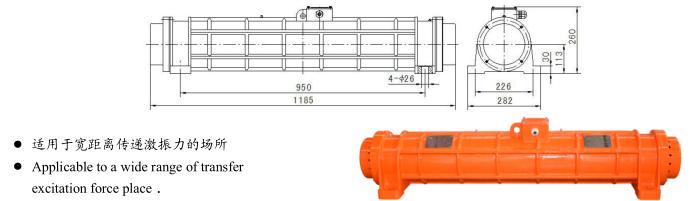 3、由于機(jī)座為長形的圓柱體結(jié)構(gòu)(類似細(xì)長桿結(jié)構(gòu)),產(chǎn)生的激振力作用點(diǎn)距離(地腳孔的距離)較寬,對(duì)于要求在寬距離傳遞激振力的場所尤其適用。