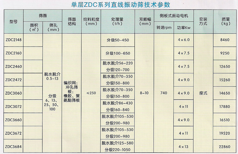 ZDC系列直線振動篩是一種利用側板式振動電機為激振源的篩分機械,廣泛適用于水電、煤炭、冶礦山、建材、化工等行業(yè)對中、粗物料進行分級和脫水。